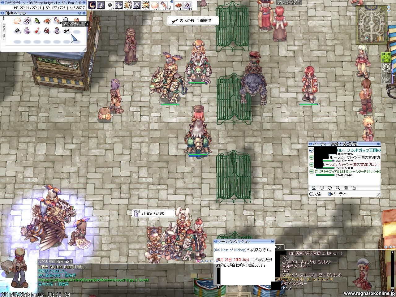 宿にもどるのもバーサークPが切れたときだけで、装備品を拾っていれば